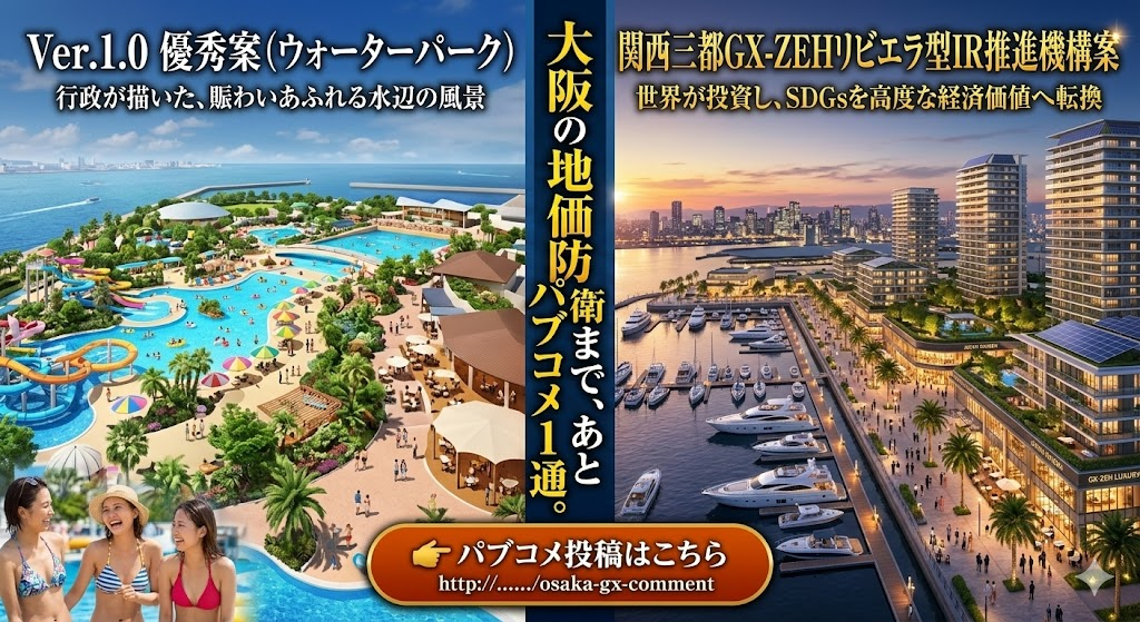 - 夢洲から、大阪全域の価値を上げる。あなたのパブコメ1通が、100年先の資産を守る盾になる。