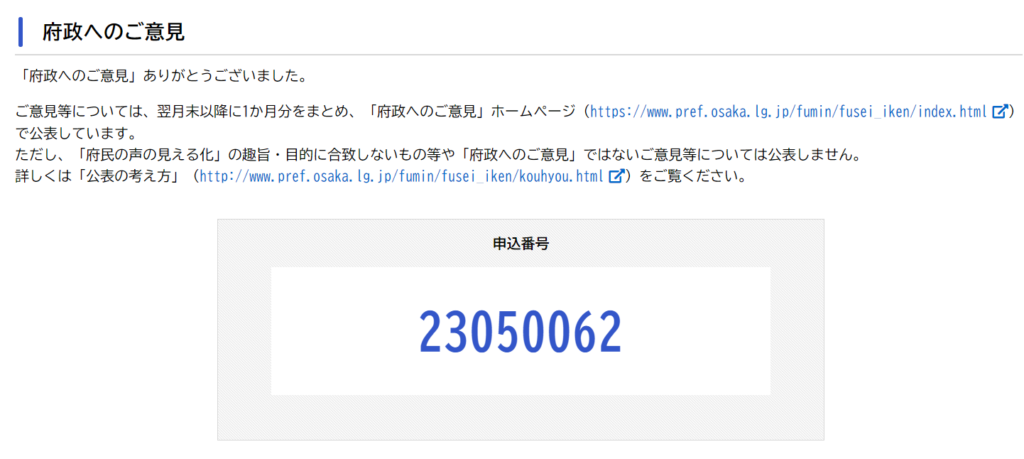 ・大阪府:知事への提言(わたしの主張) ・大阪市:市長への手紙(市民の声)